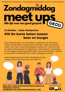 Deze Meetup gaan we met elkaar in gesprek over het korter maken van de keten tussen boer en burger. Auke Hempenius neemt ons mee in zijn enthousiate verhaal over Suver en Sun om deze kortere keten te organiseren. Wat kunnen wij morgen in onze eigen omgeving anders doen voor zowel de boer, onszelf en de aarde? Het belooft een mooie middag te worden.